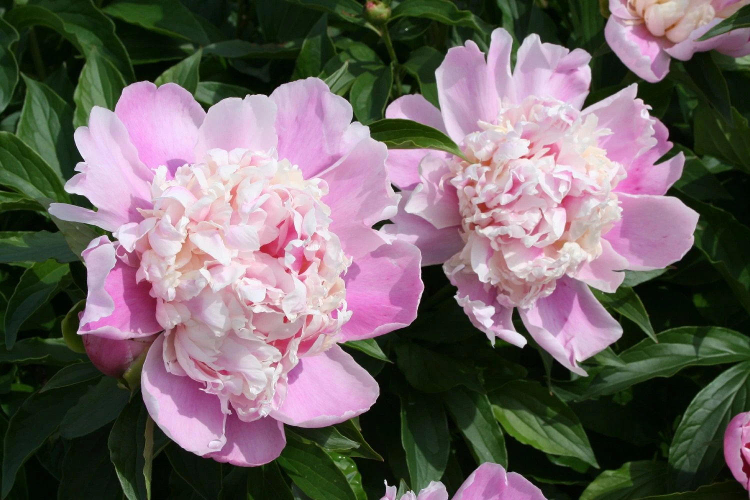 (Herkunft unbekannt). Rosalila Schalenblüten mit einer cremefarbenen Füllung. Guter Duft. Japanischer Typ. Blütezeit: Mitte Mai.